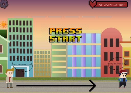 Welcome to CatchMan, The game is about a man trying to catch a man. Basically, when you start the game at first, there is a gap between the two men, and at the top there is an unkown word Which you have to Identify by guessing the letters within 3 attempts.